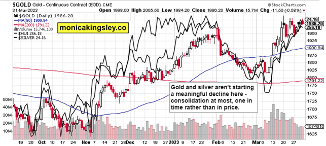 Still a clear winner, all roads are leading to precious metals. Even that daily decline on retreating inflation wasn‘t that bad as yields made up for that. And when the dollar starts weakening later this year (hello, debt ceiling Q3 2023), that will be one more engine firing.