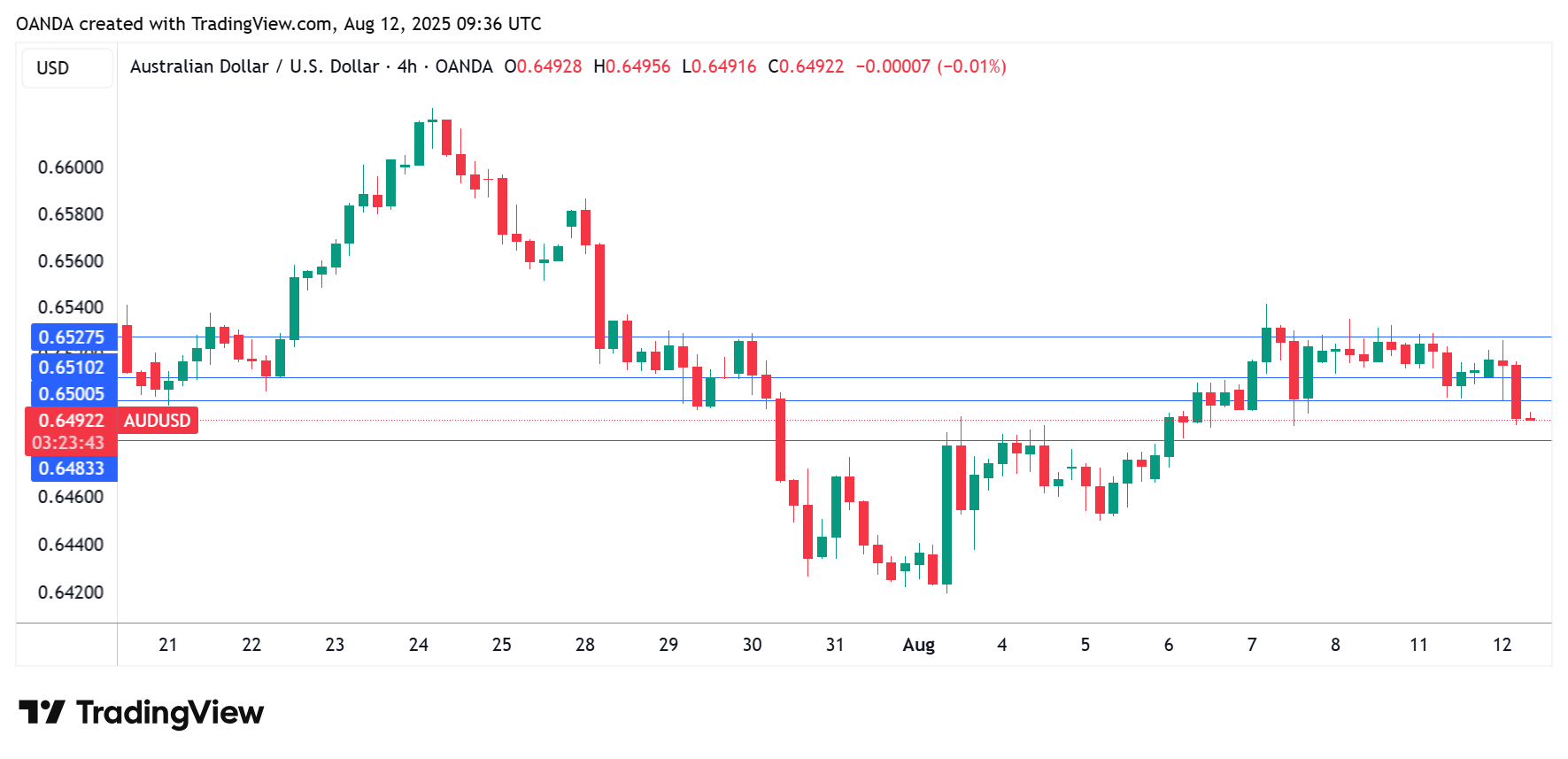 AUD/USD 4-Hour Chart, Aug. 12, 2025