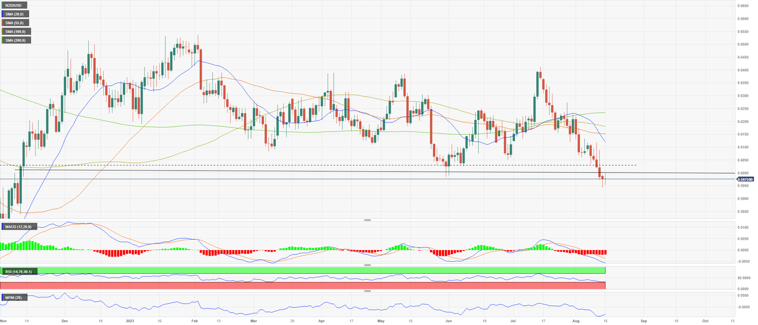 The pair has recently broken below 0.6030 and is testing levels under 0.6000, trading at the lowest since November of last year. A recovery above 0.6030 would alleviate the bearish pressure. The Kiwi would need a daily close above 0.6120 (20-day Simple Moving Average) to gain support for a significant recovery.