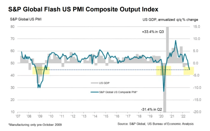 Recession evidence piles up with S&P 500 PMI services leading the way