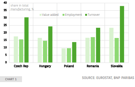 Central Europe: Share of motor vehicles and transport equipment in the Manufacturing sector