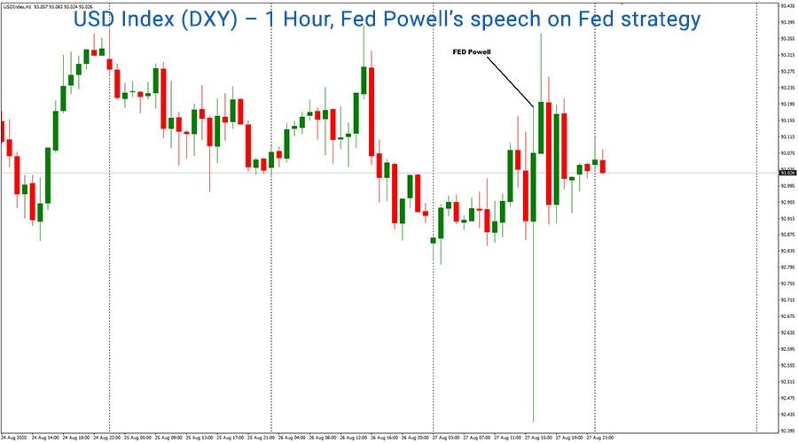 USD Index (DXY) – 1 Hour, Fed Powell’s speech on Fed strategy