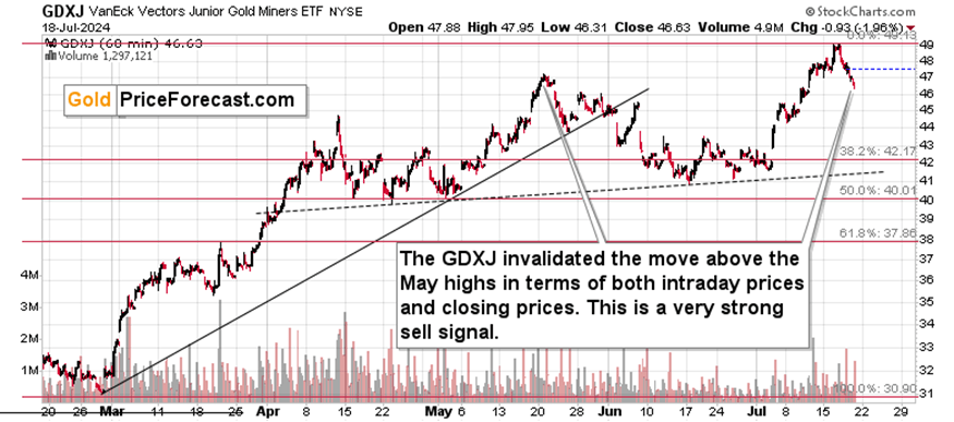 The GDXJ invalidated its own breakout. It moved and closed (!) below its May highs.