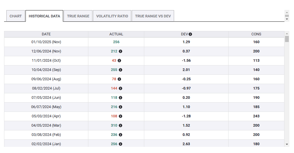 Apart from the headline figure, the employment component is of importance toward the Nonfarm Payrolls report on Friday. There is a noteworthy correlation between this component and hiring.
