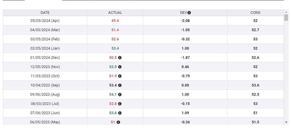 The employment component is also important. When it hit a four-month low of 45.9 in April, it signaled a weak Nonfarm Payrolls report. Most Americans work in the services sector, making this component another leading indicator – and the last one – ahead of the NFP.