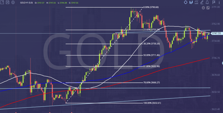 A break below 3715 risks a slide to 3710/08 then 3696/93, perhaps as far as 3690/88.