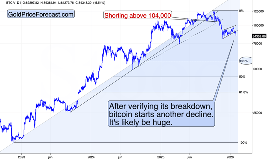 I previously emphasized that if one doesn’t have a short position in bitcoin yet, it would be a great time to enter it or add to the existing positions, if one is not happy with their size yet. In my opinion, this continues to be an excellent idea from the risk-to-reward point of view. The “new gold” was on the verge, and now it’s in the middle of the first step forward.