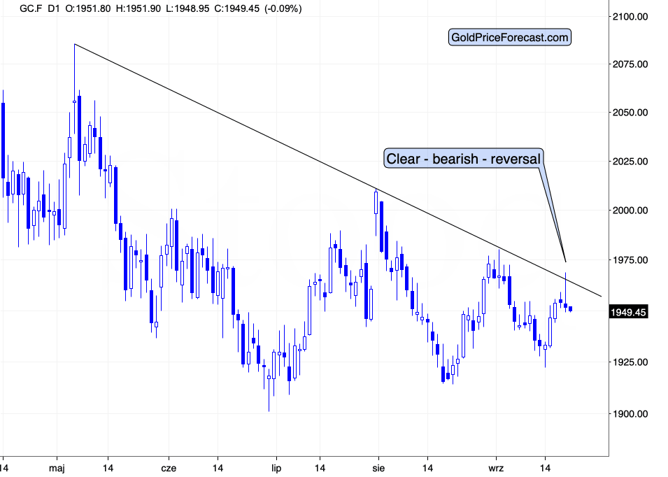 Consequently, we might see some very interesting action in the upcoming days – with gold likely reversing its course, but quite likely from slightly higher price levels.