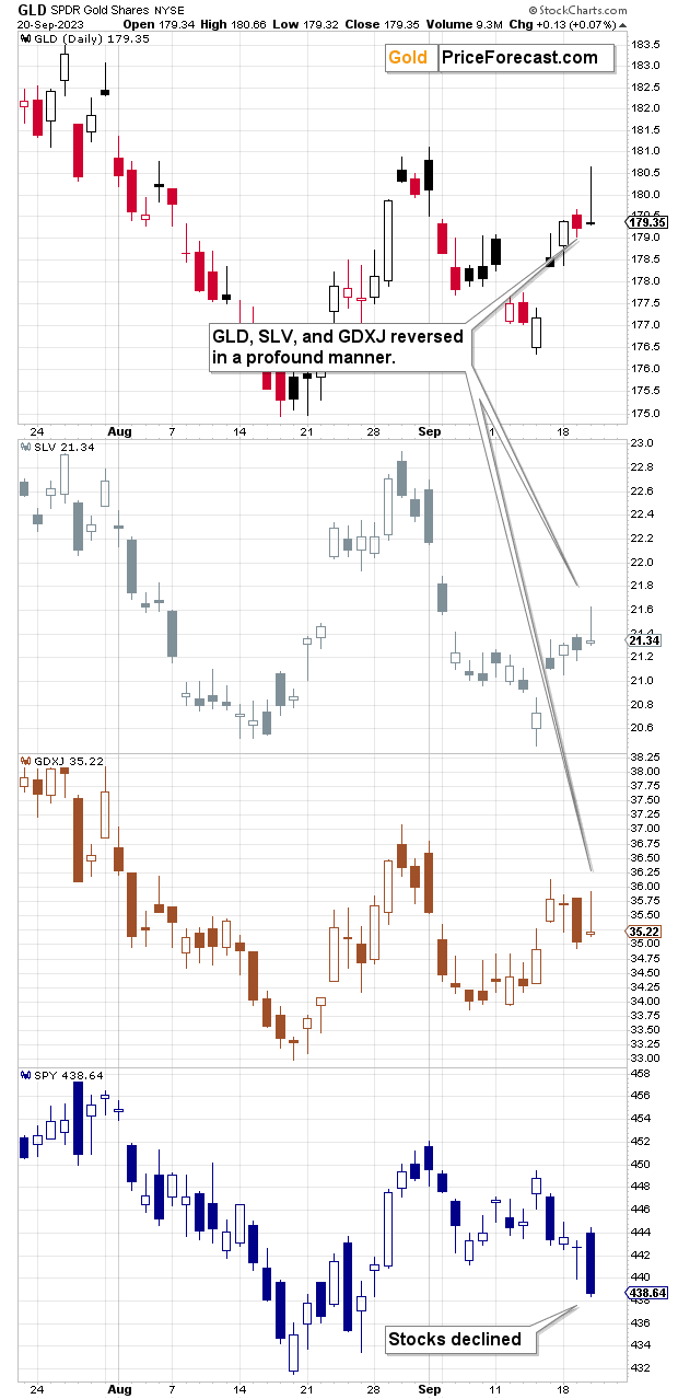 Besides, gold was not the only part of the precious metals sector that reversed in a profound manner. We saw the same things in silver and mining stocks.