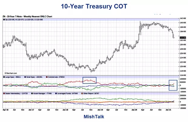 It's the small specs who are plowing into the shorts on 10-Year Treasuries.