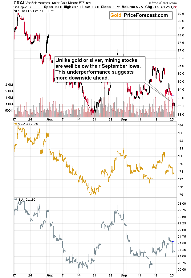 Also, the GDXJ fell decisively below its previous September lows, while neither GLD nor SLV did something like that.