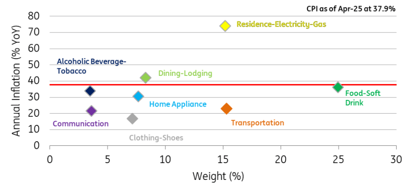 The food sector was once again another big contributor to the headline figure, adding 0.51ppt. Monthly inflation in this sector, however, remained below the level in the same month of 2024 thanks to the price drop in fresh fruits and vegetables. The benign food inflation contributed to a lower-than-expected April reading.