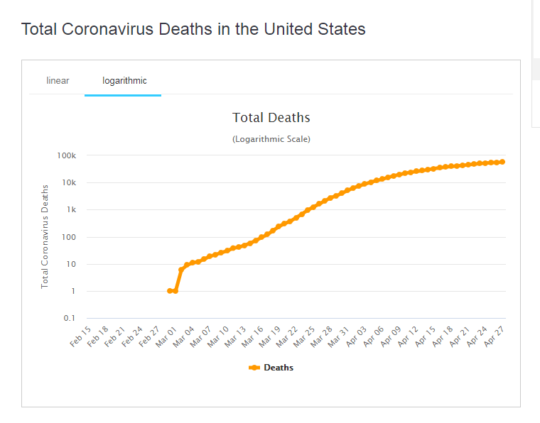 The US has succeeded in flattening the curve with the absolute number of total deaths falling to an average pace of under 2,000 per day. The logarithmic chart below shows how the world's largest economy managed to slow the spread, and a gradual lifting of restrictions is warranted. That also provides hope for equity bulls.