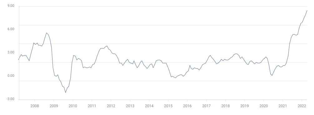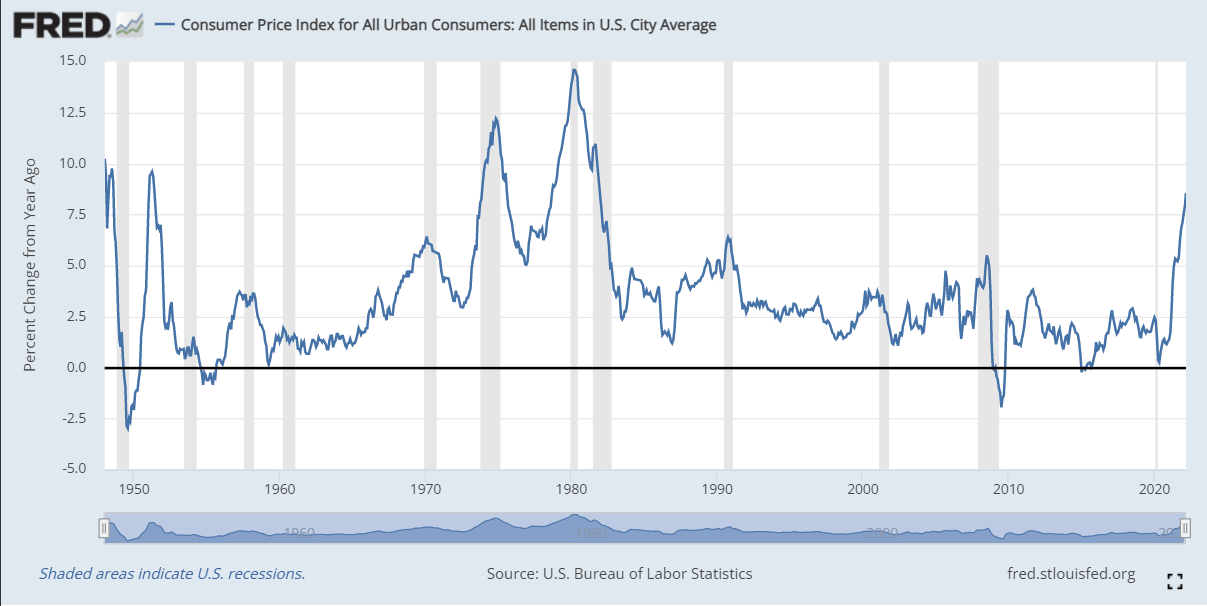 Consumer inflation in the US reached a four-decade high at 8.5% in March, far outstripping income gains and reducing purchasing power by 2.7% over the previous year. Real wages, compensation minus inflation, have fallen for 12 straight months as the Consumer Price Index has more than tripled from 2.6% last March.