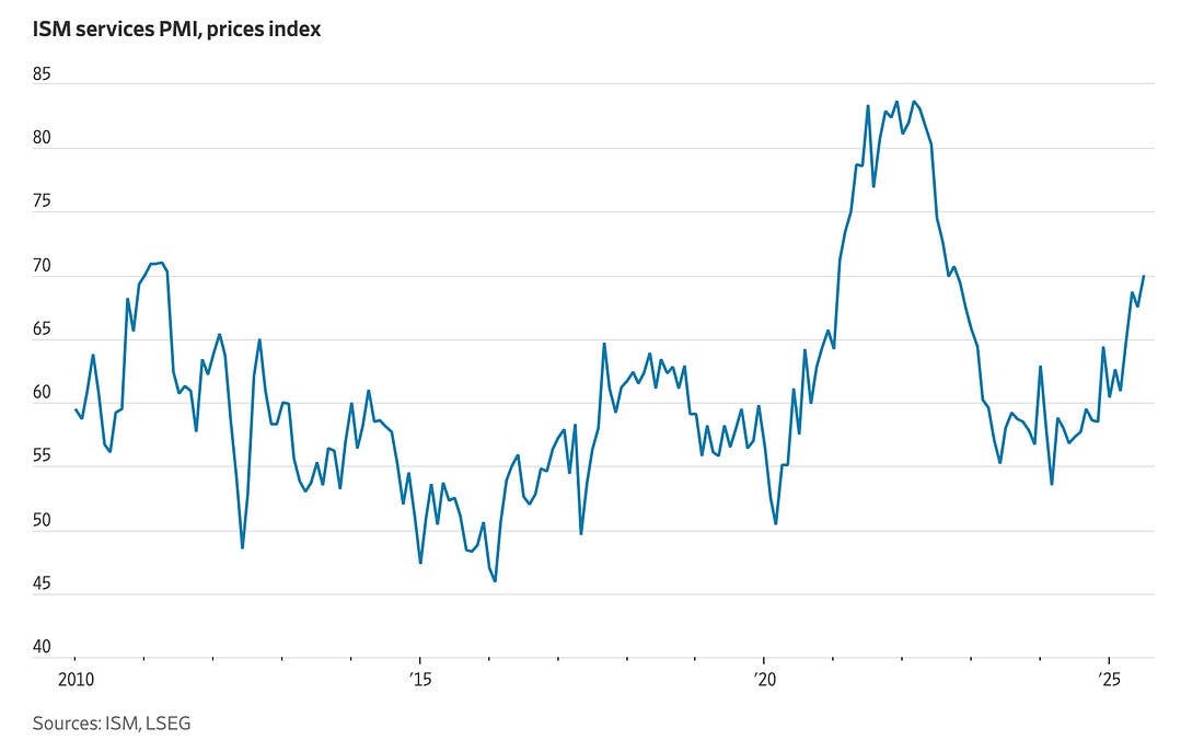 Yet the kicker? Inflation’s still sticky where it counts. The ISM prices index has now clocked eight consecutive months above 60, with July’s jump hinting that tariffs may be doing more than just posturing—they're actually starting to bite.