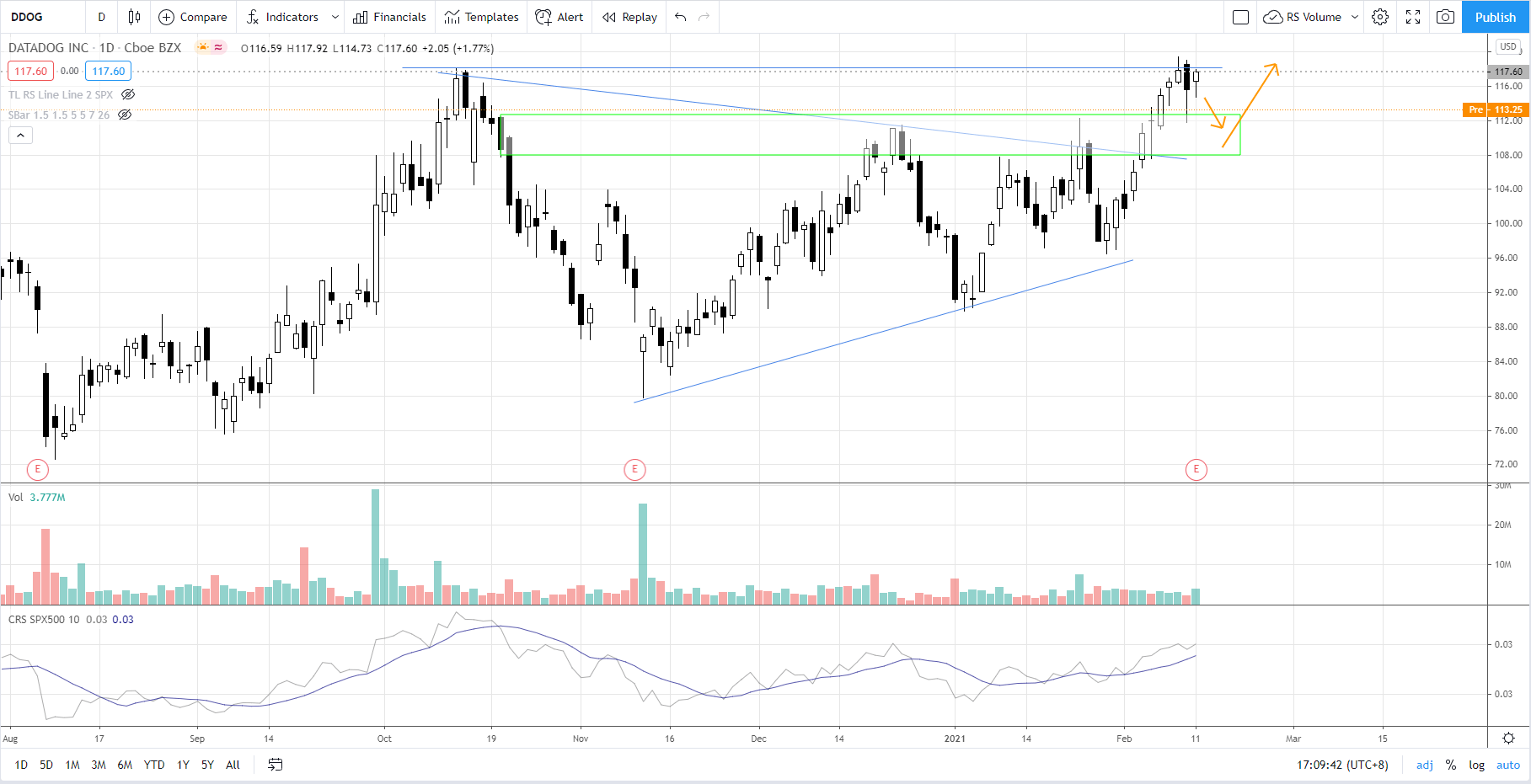 Refer to the updated demand zone, which is also the support zone for DDOG.
