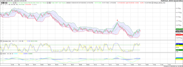 Financials: The Mar '24 30 Year T-Bond is Up 5 ticks and trading at 119.27.