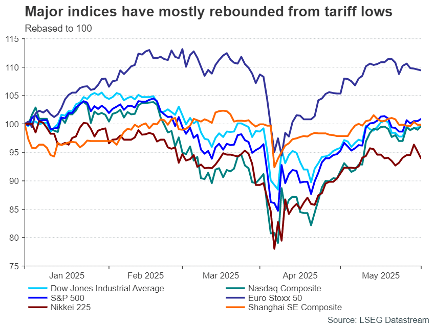 To sum up, there are still too many unknowns at this stage of the trade war to conclude that the worst is over and that Trump will either get what he wants or back down on his demands. The risk of re-escalation remains too high, and there’s also Congress’s budget reconciliation bill to consider that could raise the national debt to unsustainable levels. All this leaves US stocks, and risk assets, in general, vulnerable to another sharp selloff.