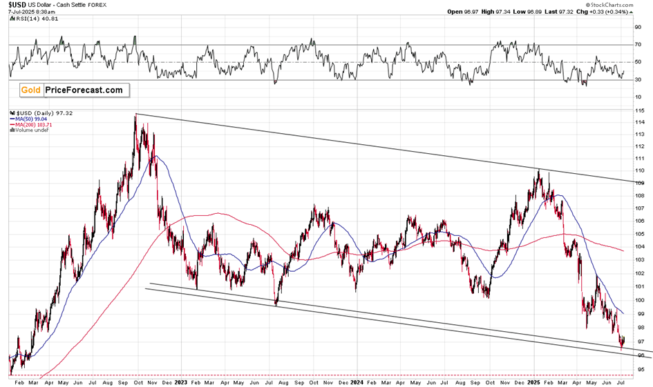 Remember how the USD Index was considered trash in 2008 because of the twin deficit? That was THE long-term bottom. It’s now being considered as almost trash, as investors are losing faith in the stability related to the U.S. – not seeing (yet) that it’s all predictable negotiating tactics.