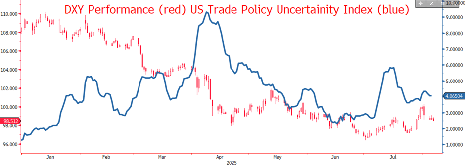 When Trump first started making serious noises regarding his tariff agenda, back when he was just President Elect, it was a one way bullish USD street. Then, that narrative was inverted, with Trump’s relentless put-offs and erratic announcements sending the once unstoppable USD rally spiraling downwards.