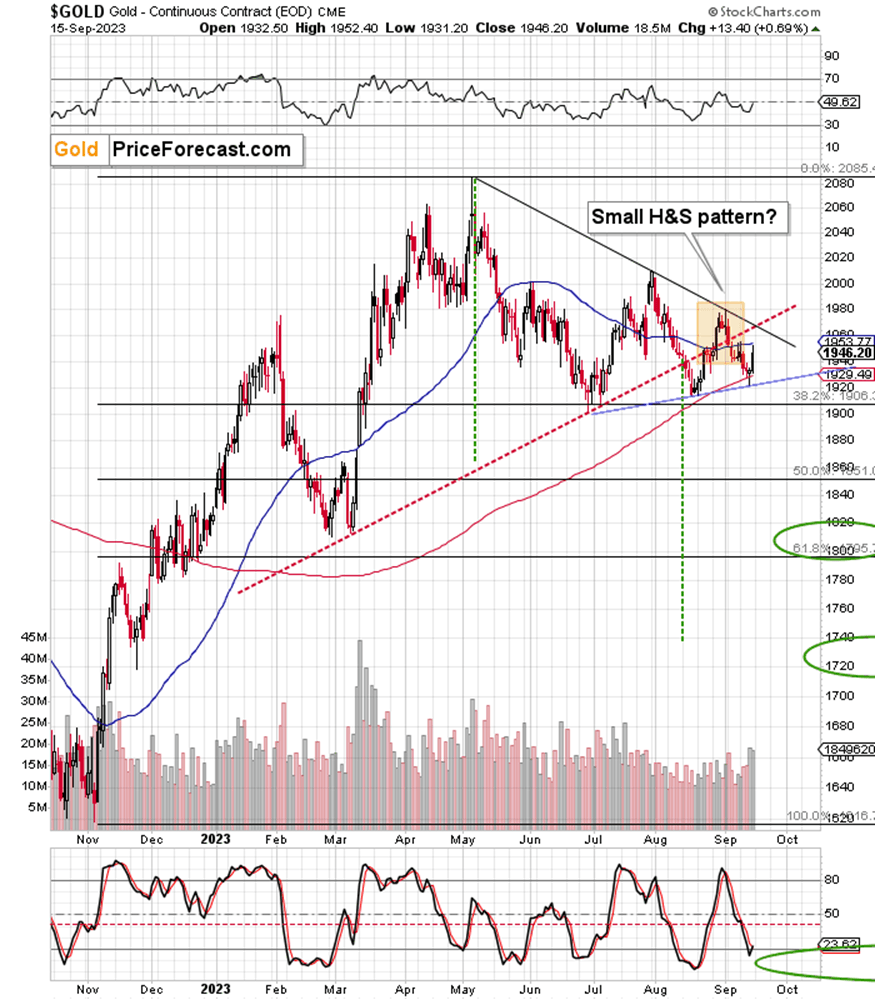 In the short run, that can work, though. The reason is that what’s bullish for the euro (higher interest rates set by the ECB are bullish for the euro) can be bearish for the USD Index, which can in turn be bullish for gold.
