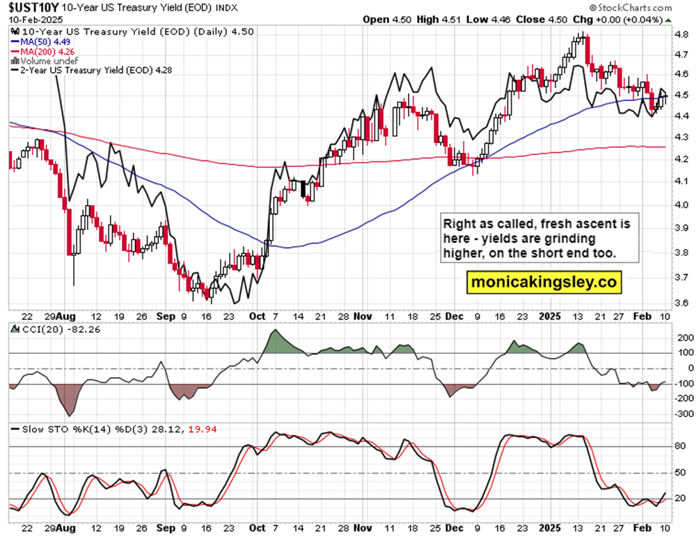 Certainly, the Friday hits are taking less time to recover Monday and Tuesday, but I‘m wary of seeing a sectoral constellation of yesterday – I‘m diving into the details in the full article. Let‘s start with the yields chart, and what it‘s doing to tech today premarket (SMCI key event today really, and I am leaning bullish, same for NVDA if the earnings turn out well, much volatility ahead – implications talked with clients, what to expect before and after). Did I mention the steel and aluminum tariffs, which formed part of my late day predictions not just as regards oil?