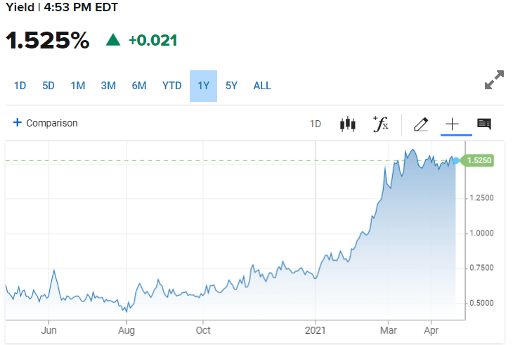 The Canadian 10-year bond rose 2 basis points to 1.525%, and its US equivalent was unchanged at 1.559%. The pandemic high close for the Canadian bond was 1.607% on March 18 and for the US 1.746% on March 31.