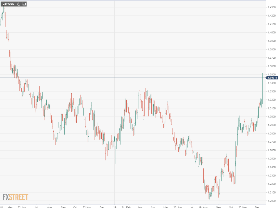 Sterling soared as soon as the poll was announced racing three figures to 1.3514 it’s strongest against the dollar since May 2018. The EUR/GBP fell almost two figures from 0.8454 to 0.8274 the lowest it has been since the weeks immediately after the June 24, 2016 exit referendum. The euro rose as well, adding about 50 points versus the dollar to 1.1172.
