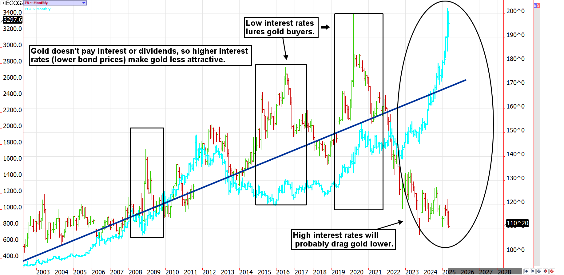 I attempted to answer this question yesterday while talking to Scott Shellady on RFD-TV’s Cow Guy Close, but as usual, I am a better writer than a speaker. Here is the clip if you are interested in watching - https://decarleytrading.com/learn-to-trade-commodities/1077-history-suggests-the-gold-and-treasury-trends-are-unsustainable