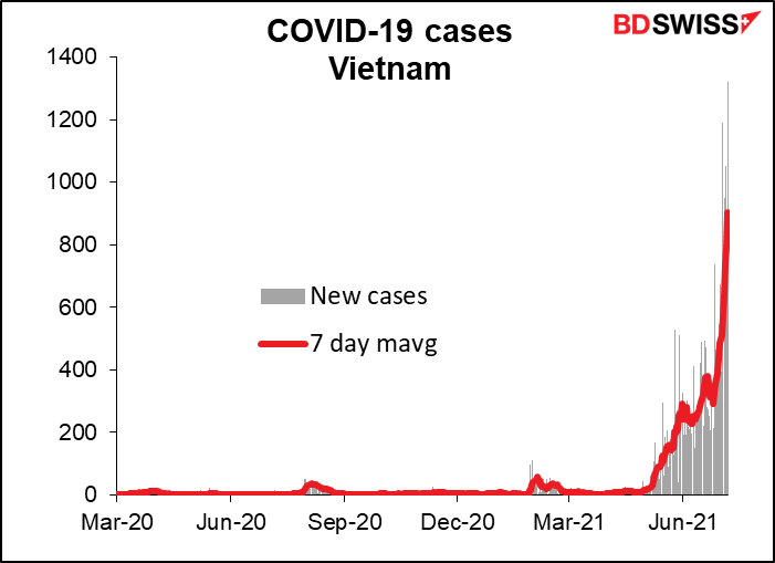 Another cautionary tale is Vietnam. The country managed to keep the virus under lock and key until recently. At the end of April it had had fewer than 3,000 cases total. Now with the new variant it’s averaging 800-900 new cases a day.