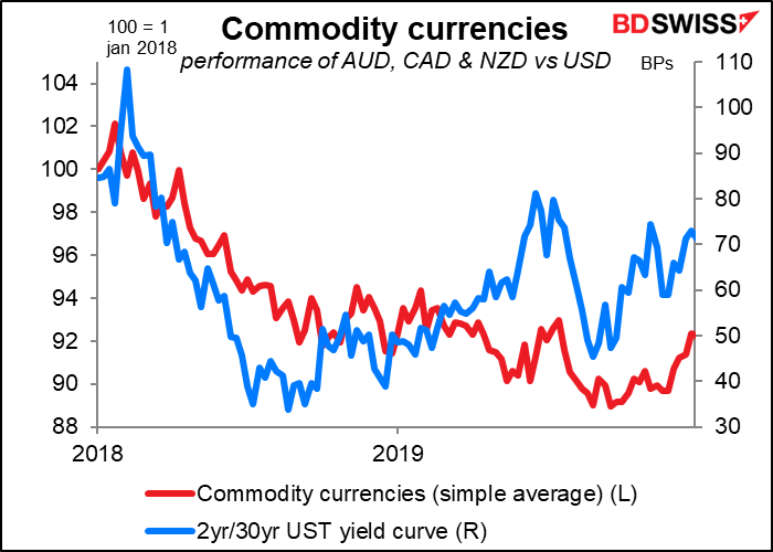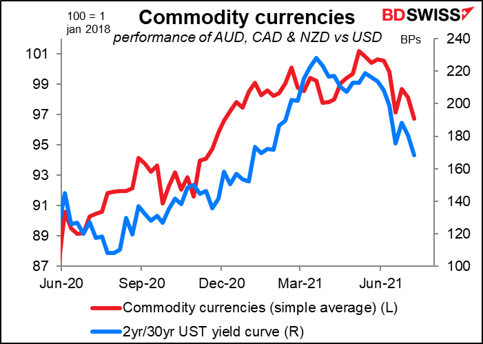 A flattening US yield curve would also tend to be negative for the commodity currencies if it signals lowered growth expectations.
