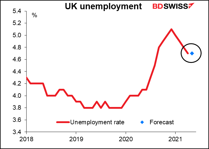 We’ll have to get used to weak retail sales figures from now. Even after two months of decline, retail sales are expected to be 17.2% above the pre-pandemic average. This just isn’t normal. As supplementary unemployment insurance fades from the scene and incomes come back to normal, it’s likely that retail sales will come back to normal, too. This is what I was talking about above: as the fiscal boost fades, the burden of supporting the economy falls on the consumer, who may well be unemployed still. That could be a challenge for growth prospects in the future.