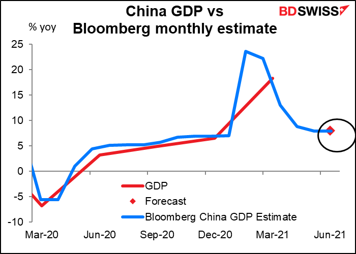 China has a number of important indicators out during the week, including trade (Tue) and the usual retail sales, industrial production, and fixed asset investment on Thur, this time with the crucial GDP figure. It’s expected to come in at around 1.0% qoq or 8.0% yoy, which is returning to normal after over a year of pandemic-induced distortions.