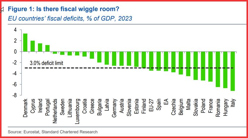 Tidbit: Standard Chartered economist Graham evaluated the Trump effect of the cohesiveness of the eurozone, which tends to improve during crises. This time the reaction to Trump may depend on how much any country’s trade is affected. Along the way, he includes this chart of deficits, replicated by Bloomberg. It’s something to tuck away. One argument is that the pending Trump crisis, not only trade but defense, will allows fiscal wiggle room. Well, only four countries actually have any.