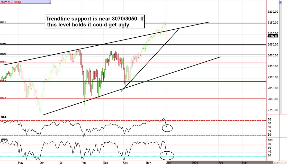 Trendline support in the December contract will be 3070/3050; this is where things get interesting. A break and hold below could get (temporarily) ugly.