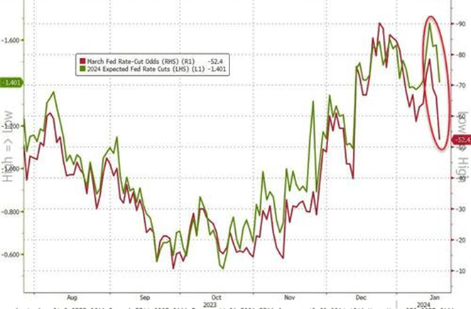 Indeed, the market expectation of a quick rate-cutting cycle has dropped precipitously this week.