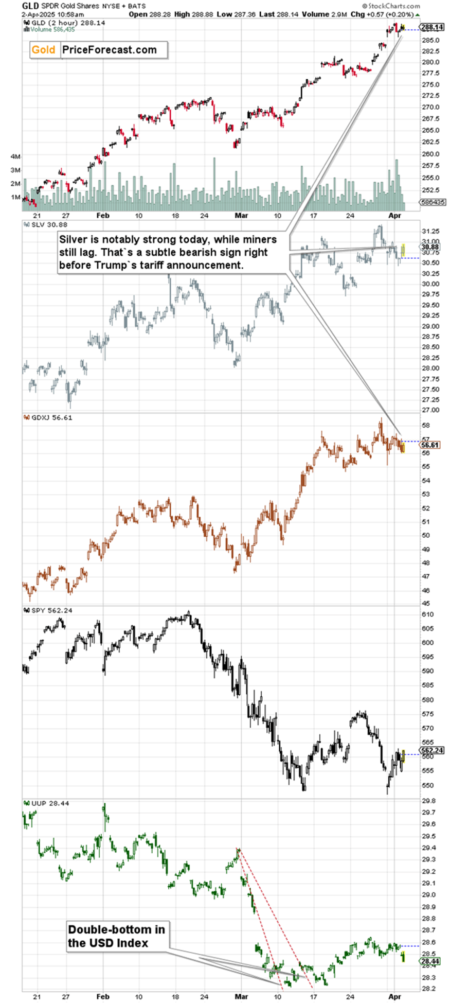 This might also mean “peak gold” as gold serves as the safe haven. The way miners and silver perform today confirms this (just as the previously mentioned long-term Fibonacci-extension-based target does).