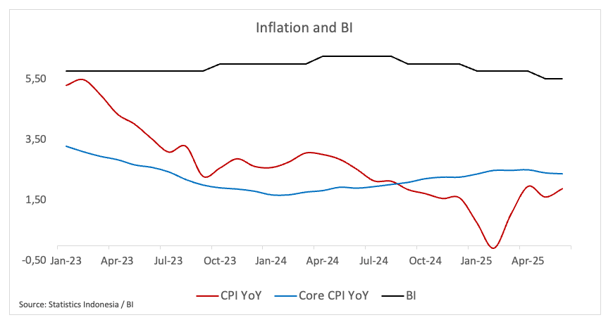 Even though the economic growth rate in the first quarter decreased to 4.87% YoY, the worst since late 2021, the BI kept its full-year growth forecast for 2025 at 4.6% to 5.4%, expecting the economic activity to pick up pace in the latter part of the year.