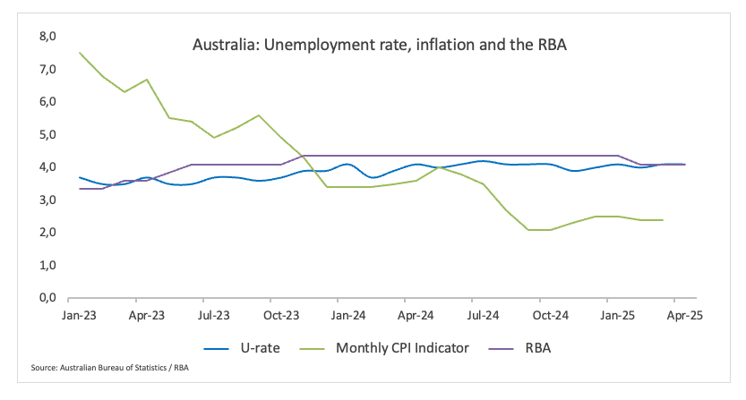 After holding rates steady at 4.1% in April, the RBA signaled it was not yet ready to react to growing international uncertainty—particularly around US tariffs. However, Minutes from the April meeting indicated that the board viewed the May meeting as a timely opportunity to reassess its policy stance.