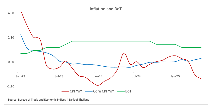 In its latest outlook, the BoT revised down its 2025 GDP projection to around 2.0%, reflecting heightened concerns over spillovers from the US–China trade war and the threat of steep US reciprocal tariffs. However, should US duties escalate to half the proposed 36% level, domestic economic growth could slow sharply to around 1.3% this year.