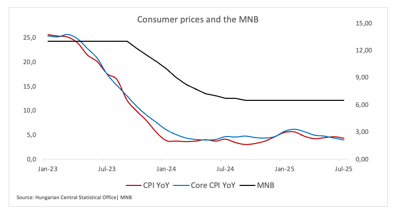 The MNB said it does not expect to hit its 3% inflation target until early 2027, warning that households still see price pressures as sticky,, a mindset it considers crucial to break.