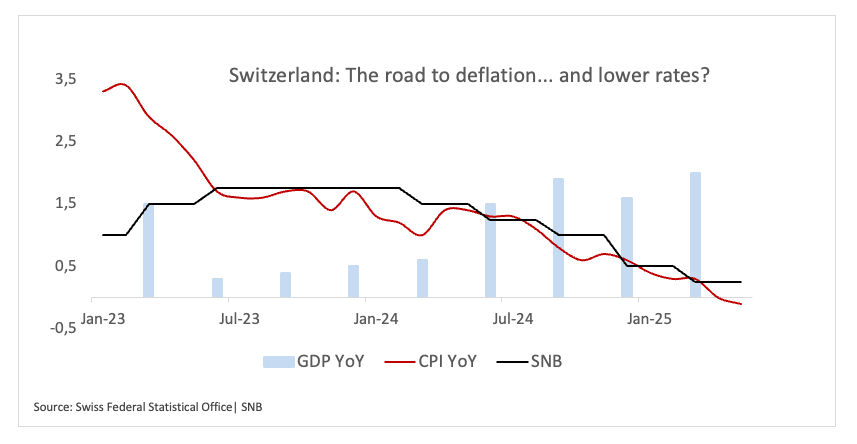 In light of the latest data releases, SNB officials are increasingly focused on deflationary risks rather than debating whether to cut rates below zero. Inflation is undershooting the bank’s projection by around 0.3 percentage points for Q2, and the Swiss Franc (CHF) remains unusually strong, prompting the US Treasury to place Switzerland on its FX intervention watch list, both factors that heighten the case for easing.