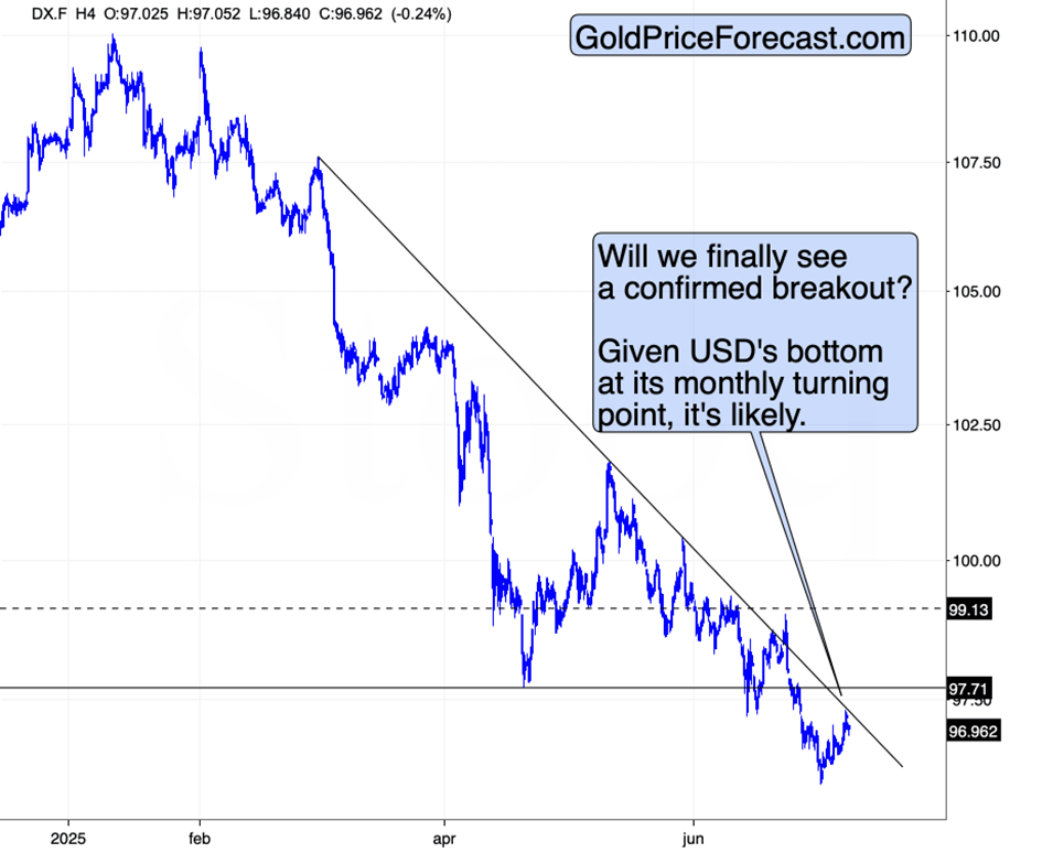This suggests we're transitioning from the chaos-pricing phase to the fundamental-reassertion phase, with important implications for the USD Index, gold, and commodity markets in the weeks ahead. This likely means not just paper gold or paper silver, but also physical metals’ prices – they might decline with a delay, but they are also likely to move lower. The economic headwinds from comprehensive tariff implementation, combined with dollar strength from trade flow changes, create a particularly challenging environment for industrial commodities and mining stocks while potentially supporting the USD through higher real yields as the Fed responds to stagflationary pressures.