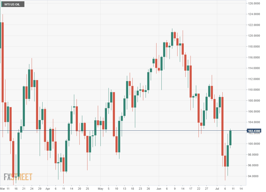 West Texas intermediate (WTI) rose to $102.44, closing above $102.00 for the first time in four sessions. The North American crude standard has gained 4.9% since closing at $95.78 on Wednesday.