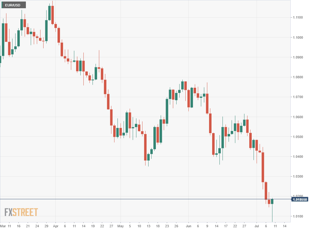 - Nonfarm Payrolls add 372,000 in June, beating the 268,000 forecast. Unemployment rate remains at 3.6%.