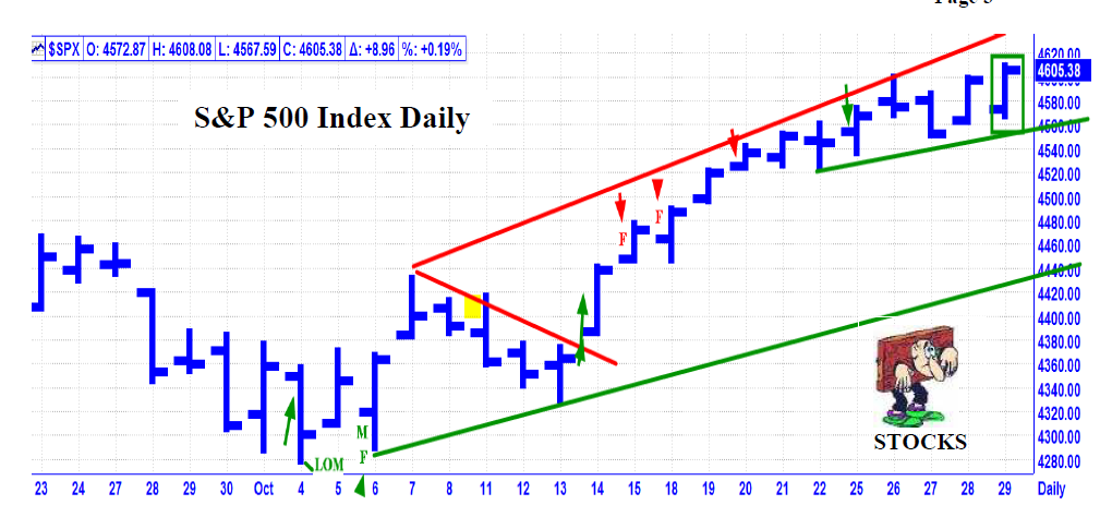 10/4 was the exact low of the month. 10/6 was a re-test of the 10/4 low of the month and a very good low. 10/11 was a pass. 10/14 was a breakout buy over a downtrend. 10/15 and 1020 were not effective. 10/25 was close in price and one day ahead of a short term high. Score -" 4 out of 6 good dates.
