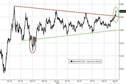 While US stocks sagged into the month's end, bullion basked in August’s glow. Yields bull-steepened, short-end Treasuries ran hard, and gold set fresh record closes. Rate-cut conviction grew louder after the weak August 1 payrolls print, dovish Fedspeak, and sticky-but-contained inflation. Barring a blowout jobs report next Friday, the market has all but penciled in a September 17 Fed cut. Yet, with Fed independence under political scrutiny, the dollar feels a little less wanted on the world stage — and gold a little more necessary.