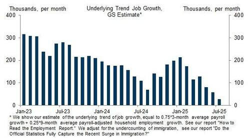 US consumer spending surprised with resilience, keeping growth alive even under tariff strain, while inflation’s core impulse is stuck in services. Job growth, however, has slipped from a sprint to a shuffle — Goldman pegs underlying monthly gains at ~25k, down from 200k at the year’s start. That’s the kind of erosion that eventually cracks the Fed’s resolve. And though financial conditions have loosened, equities are facing a wall of worry: high valuations, political noise, and historically the worst month for risk.