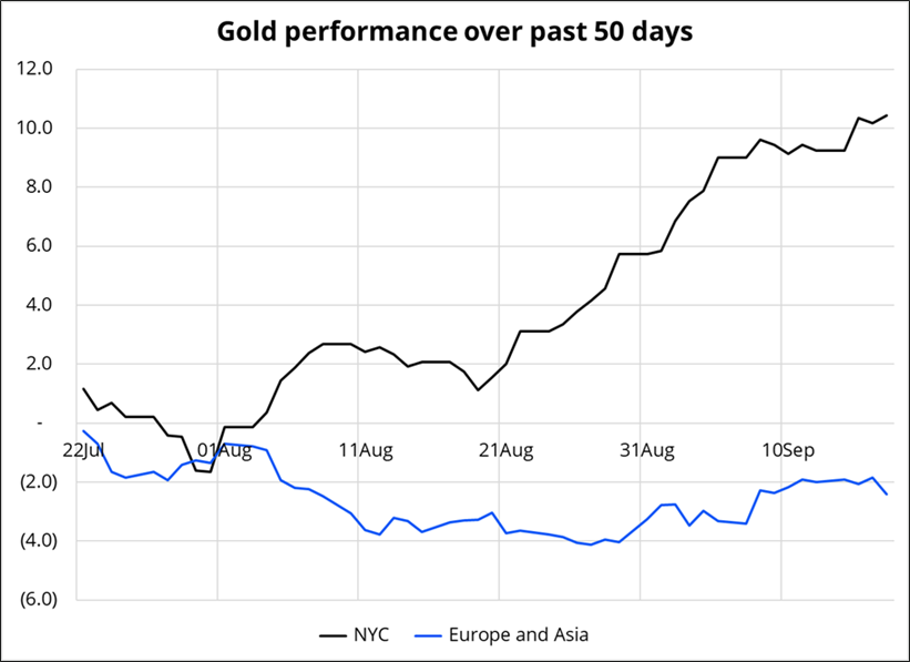 I think the explanation is two-fold. 1) The US jobs data has driven a good bit of the performance and most of the recent drop in US yields has also come in US time. 2) Asia sold the USD they needed to sell in April and May and so did Europe. They bought the gold they wanted to buy. They were early.