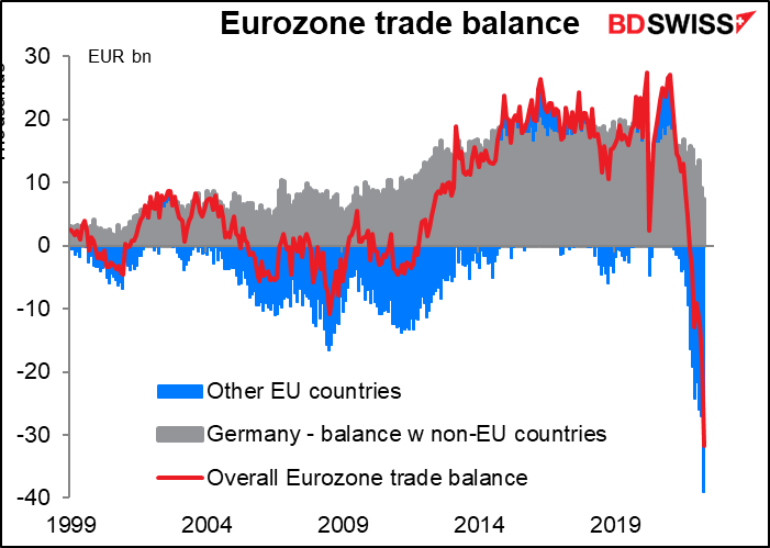 Having said all of the above…sometimes the trade account is the dog and the financial accounts are the tail. Today may be one such time as the surge in energy prices combined with the slowdown in the global economy throws the German trade account into deficit.